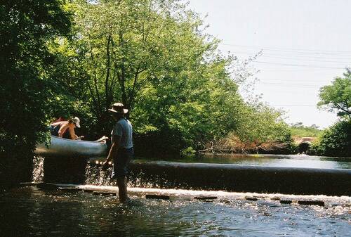 Easing our way over the spillway.