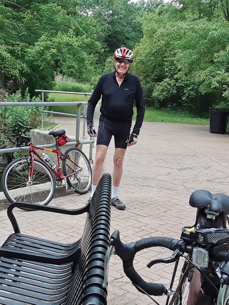 Today, we rode from the parking lot, 5 miles north and back, and 5 miles south and back. (Total=20).